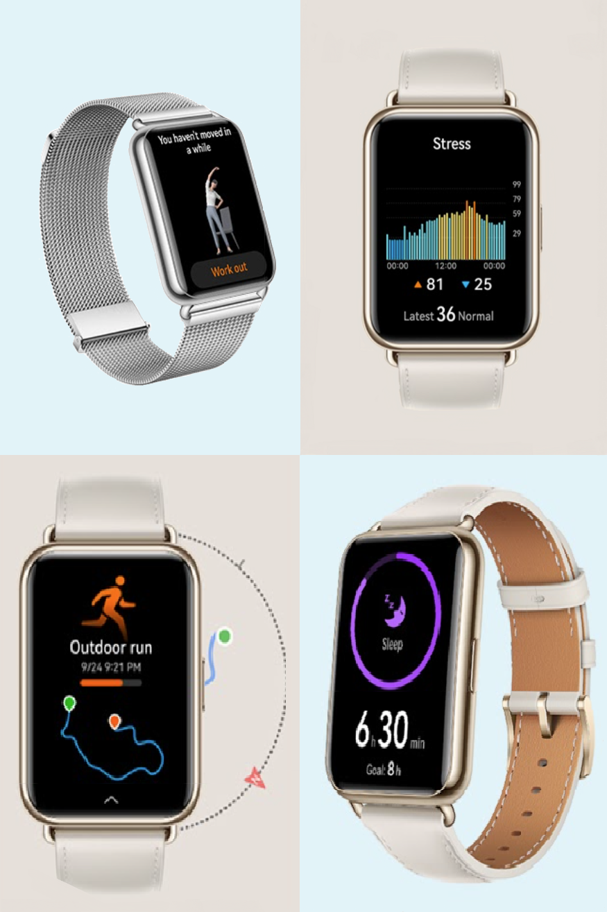 - przypomnienia o zasiedzeniu — Huawei Watch Fit 2 może monitorować Twoją aktywność oraz wysyłać powiadomienia z prostymi ćwiczeniami rozciągającymi, gdy będziesz zbyt długo siedzieć