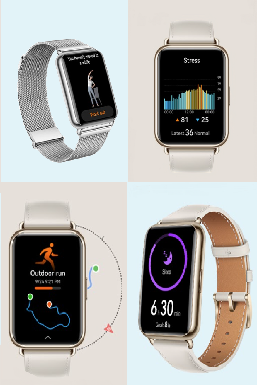 - przypomnienia o zasiedzeniu — Huawei Watch Fit 2 może monitorować Twoją aktywność oraz wysyłać powiadomienia z prostymi ćwiczeniami rozciągającymi, gdy będziesz zbyt długo siedzieć