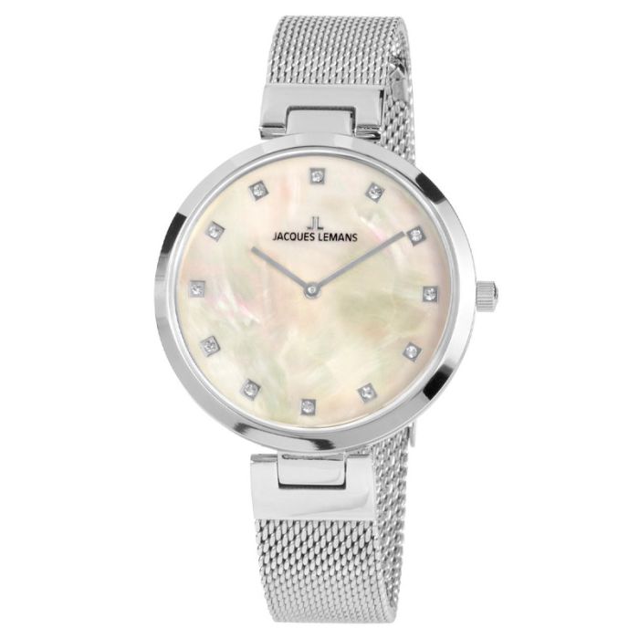 Elegancki zegarek damski Jacques Lemans Milano JL 1-2001C, który doskonale sprawdzi się zarówno z elegancką kreacją jak i codziennym stroju. Koperta została wykonana z wysokiej jakości stali szlachetnej, która jest odporna na działanie warunków atmosferycznych. Elegancka bransoleta doskonale dopełnia całość. Wyjątkowy cyferblat z masy perłowej został przykryty utwardzonym szkłem mineralnym. Zegarek posiada wodoszczelność 50M, dzięki czemu może mieć styczność z wodą np. prysznic, pływanie.