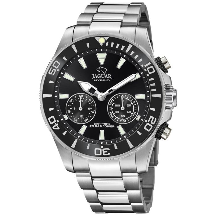 Jaguar Hybrid Connected J888/2 to zegarek sportowy oferujący wodoszczelność na poziomie 200 metrów (20 ATM). Wyjątkowo solidna konstrukcja chroni czasomierz przed wilgocią i wodą. Zegarek przystosowany jest do pływania oraz nurkowania głębinowego.