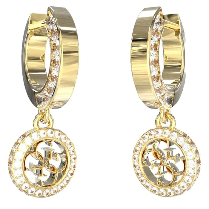 Kolczyki GUESS 4G Crush JUBE04165JWYGT/U to elegancki dodatek, który doskonale podkreśli Twój styl i doda blasku każdej stylizacji. Wykonane z wysokiej jakości stali szlachetnej w złotym kolorze, są nie tylko stylowe, ale również trwałe i odporne na korozję. Dzięki powłoce PVD, która zapewnia wyjątkową trwałość i piękny połysk, kolczyki długo zachowają swój niepowtarzalny wygląd.