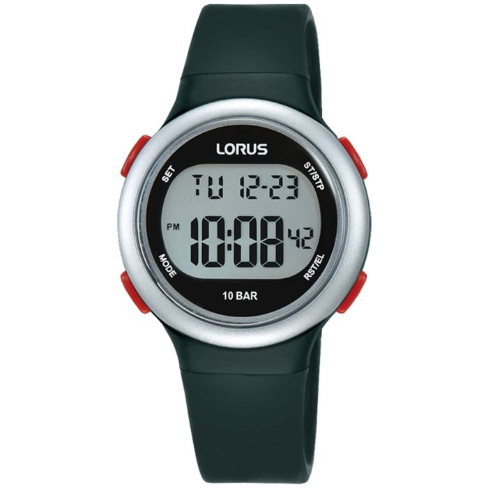 Lorus R2335QX9 to sportowy zegarek dziecięcy z cyfrowym wyświetlaczem, zaprojektowany z myślą o aktywnych dzieciach, które potrzebują niezawodnego i łatwego w obsłudze czasomierza. Dzięki funkcjom takim jak alarm, stoper i datownik, ten model nie tylko uczy punktualności, ale też oferuje dzieciom praktyczne narzędzie do codziennego użytku. Klasyczna czarna kolorystyka dodaje mu uniwersalnego charakteru i stylowego wyglądu.