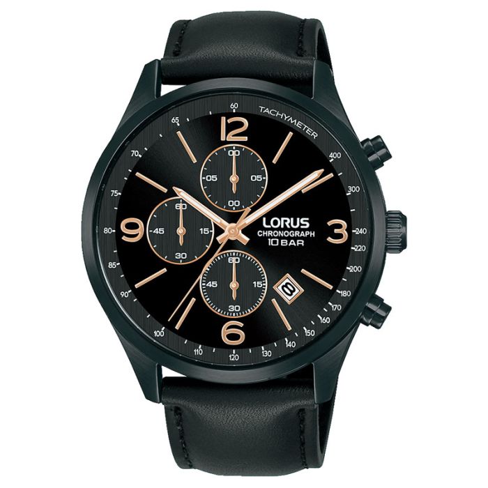 Lorus RM343HX9 to sportowy zegarek dla mężczyzn ceniących aktywny tryb życia. Wyposażono go w bardzo dokładny mechanizm kwarcowy zawierający stoper oraz datownik wskazujący dzień miesiąca. Koperta tego modelu wykonana jest ze stali nierdzewnej pokrytej powłoka przy zastosowaniu techniki PVD i osadzono w niej wytrzymałe szkło mineralne. Połączona z gustownym skórzanym paskiem tworzy spójną całość. Tarcza zegarka idealnie kontrastuje z oznaczeniami godzin, co sprawia, że jest przyjemna dla wzroku, przejrzysta i czytelna. Wodoszczelność 100M pozwala na pływanie oraz nurkowanie bez akwalungu.