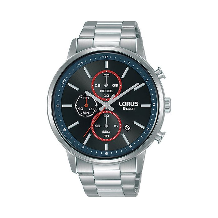 Lorus RM397GX9 to sportowy zegarek dla mężczyzn ceniących aktywny tryb życia. Wyposażono go w bardzo dokładny mechanizm kwarcowy zawierający stoper oraz datownik wskazujący dzień miesiąca. Koperta tego modelu wykonana jest ze stali nierdzewnej pokrytej srebrną powłoka przy zastosowaniu techniki PVD i osadzono w niej wytrzymałe szkło mineralne. Połączona z gustowną, stalową bransoletą tworzy spójną całość. Tarcza koloru czarnego idealnie kontrastuje z oznaczeniami godzin, co sprawia, że jest przyjemna dla wzroku, przejrzysta i czytelna. Wodoszczelność 50M pozwala na ograniczony kontakt z wodą, np. prysznic lub kąpiel w wannie.