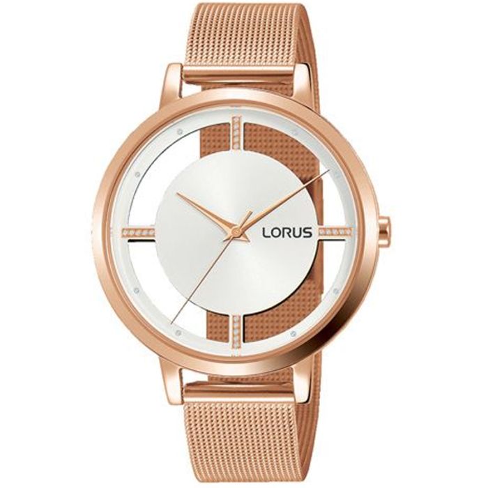 Lorus RG288PX9 to czasomierz zaprojektowany dla kobiet, które cenią modny i zarazem minimalistyczny design. Bardzo ciekawie prezentuje się połączenie dużej koperty z wąską bransoletą typu Mesh. W modelu tym zastosowano precyzyjny mechanizm kwarcowy zasilany baterią. Koperta o średnicy 36 mm została wykonana ze stali nierdzewnej odpornej na warunki atmosferyczne. Złote elementy wykończono przy użyciu techniki PVD w kolorze różowego złota. Powłoka ta charakteryzuję się wysoką odpornością na ścieranie. Minimalistyczny, złoty cyferblat w połączeniu z prześwitami w kopercie uwodzi swoją prostotą zaakcentowaną wskazówkami i eleganckimi indeksami. Całość przykrywa wytrzymałe szkło mineralne. Wodoszczelność 50M pozwala na pływanie z nim.