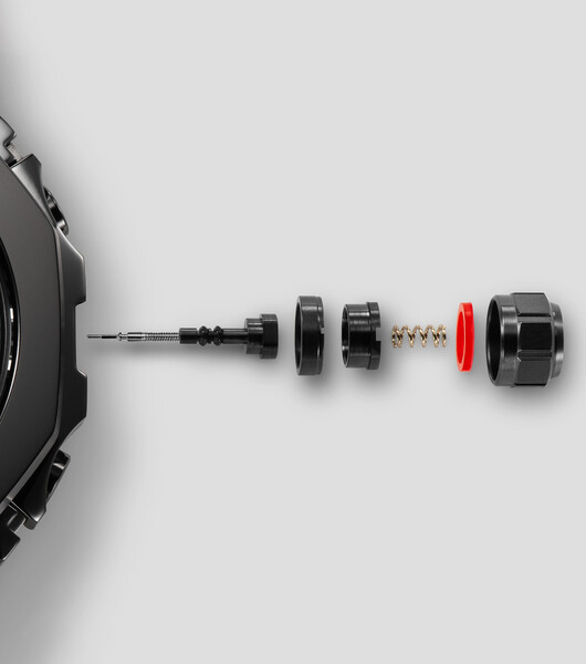 G-SHOCK MRG-B2100D-1ADR napędza mechanizm solarny Tough Solar, z możliwością działania do 18 miesięcy bez doładowania, co zapewnia wygodę użytkowania bez częstych ładowań. Funkcja synchronizacji czasu odbywa się przez Bluetooth® i radiowy system Multi Band 6, co pozwala na automatyczne i precyzyjne ustawianie godziny, dostosowane do różnych stref czasowych. Zegarek współpracuje z aplikacją CASIO WATCHES, umożliwiając monitorowanie stanu, sprawdzanie położenia i ustawienia zegarka z poziomu smartfona.