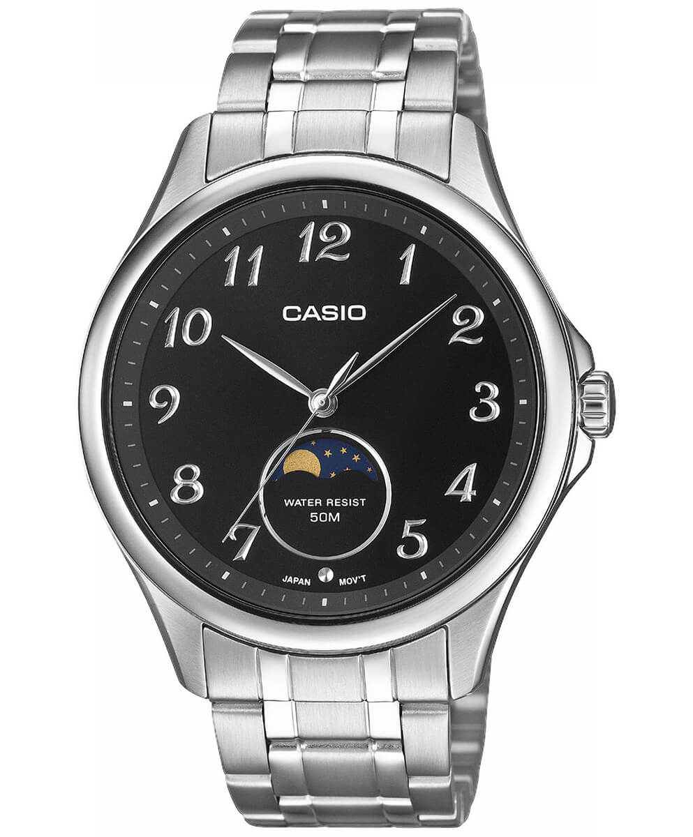 Casio MTP-M110D-1AVER to klasyczny, elegancki zegarek męski, który łączy tradycyjny design z codzienną funkcjonalnością. Model wyróżnia się ponadczasową stylistyką w czarno - srebrnym kolorze – zarówno koperta, jak i bransoleta zostały wykonane ze stali szlachetnej, co sprawia, że zegarek pasuje do formalnych stylizacji, jak i codziennego użytku.