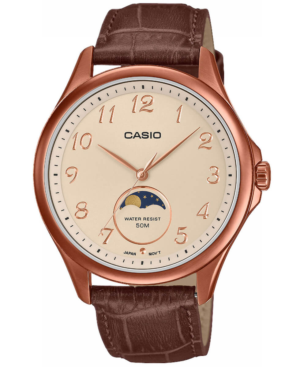 Casio MTP-M110RL-5AVER to klasyczny zegarek męski, który łączy elegancję z codzienną funkcjonalnością. Model ten wyróżnia się ponadczasowym designem w odcieniach różowego złota, beżowej tarczy i brązowego paska, dzięki czemu sprawdzi się zarówno w formalnych, jak i casualowych stylizacjach. To propozycja dla mężczyzn ceniących klasykę, trwałość i uniwersalny styl.