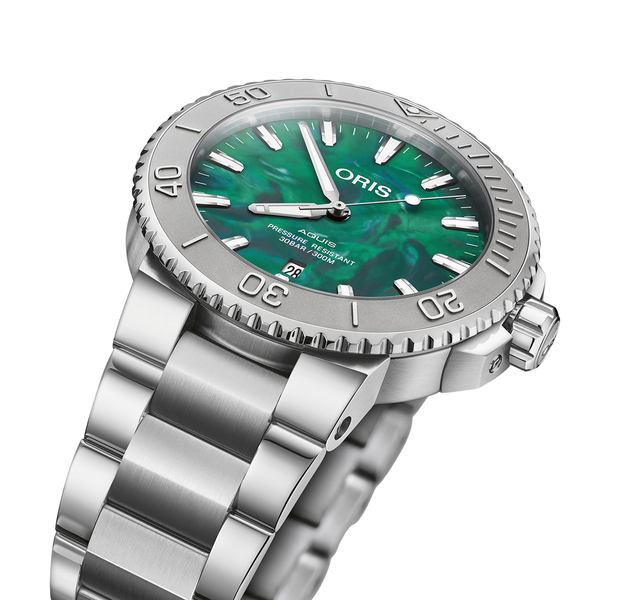 Zegarek męski z zieloną tarczą posiada wbudowany mechanizm automatyczny Oris 733. Oznacza to, że jest on zasilany ruchami kinetycznymi nadgarstka. O jego klasie świadczy wysoka liczba kamieni łożyskujących, które wynosi 26 sztuk. Czas rezerwy chodu został oszacowany na 38 godzin.
