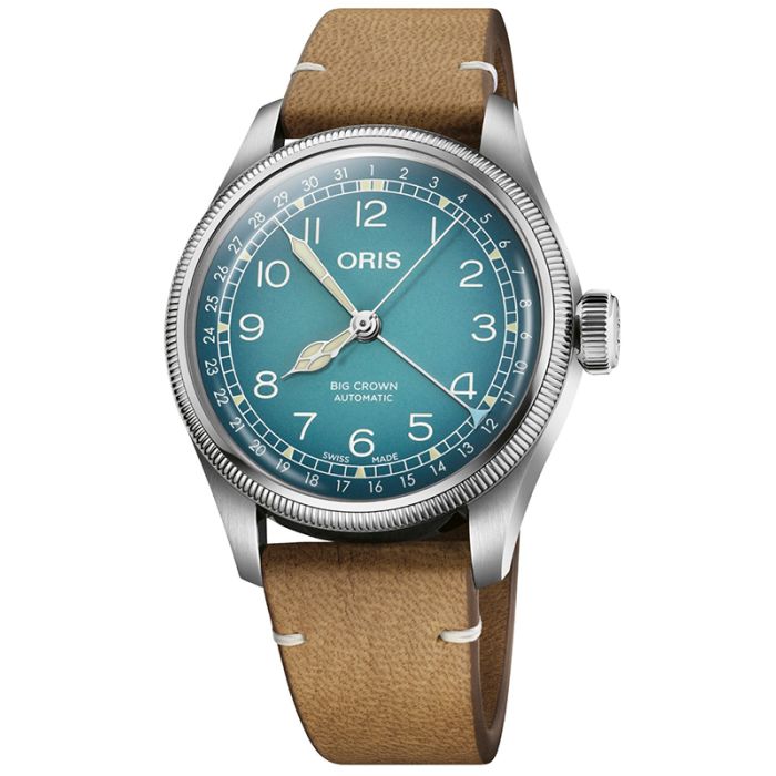 Oris Big Crown Pointer Date X Cervo Volante Blue posiada piękną, niebieską tarczę, która harmonizuje z klasycznym designem zegarka. Wysokiej jakości szafirowe szkło zapewnia doskonałą ochronę przed zarysowaniami oraz przejrzystość, dzięki powłoce antyrefleksyjnej. Na tarczy znajduje się sekundnik oraz funkcja daty, co czyni zegarek praktycznym i funkcjonalnym. Przeszklony dekiel pozwala podziwiać precyzyjny mechanizm zegarka, co jest dodatkowym atutem dla miłośników zegarmistrzostwa.