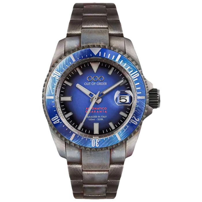 Riccardo Torrisi dołącza do dwóch ekspertów w dziedzinie - Claudio Dalla Mora i Dario Ceolotto - i, pracując ramię w ramię, trio tworzy unikalną markę, która łączy wyrafinowaną produkcję zegarków najwyższej klasy z charakterystycznym wykończeniem "Damaged in Italy" - opatentowanym przez nich, dodającym jeszcze więcej charakteru finalnemu produktowi. Out of Order Watches rywalizuje na rynku "luksusowym", oferując wyjątkowe spojrzenie na zegarki vintage, z pasjonującą precyzją wykwalifikowanych rzemieślników i doświadczonych zegarmistrzów. Nigdy nie znajdziesz dwóch identycznych egzemplarzy zegarków Out of Order. Każdy z nich jest, dzięki rzemieślniczej pracy, faktycznie unikatowym dziełem.