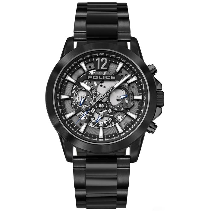 POLICE PL.PEWJK2194901 z kolekcji VERTIGO to zegarek męski klasy fashion, zaprojektowany z myślą o mężczyznach, którzy oczekują nowoczesnego wzornictwa połączonego z praktycznymi funkcjami. Głęboka czerń koperty i bransolety w połączeniu z szarą tarczą tworzy odważną, a zarazem elegancką estetykę, doskonałą do miejskiego stylu życia.