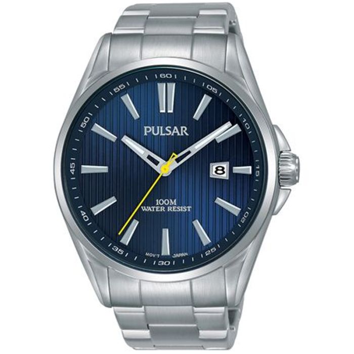 Klasyczny zegarek Pulsar PS9603X1 przeznaczony dla mężczyzn. Jest to doskonała propozycja dla osób, które poszukują zegarka do bardziej formalnego stroju. Koperta o średnicy 43 mm została wykonana z wysokiej jakości stali szlachetnej. Połączono ją z solidną bransoletą wykonaną ze stali nierdzewnej. Granatowa tarcza z wyraźnymi indeksami sprawia, że odczyt godziny jest łatwy i szybki. Zastosowany precyzyjny mechanizm kwarcowy wyposażono w datownik wskazujący aktualny dzień miesiąca. Cyferblat przykrywa odporne szkło mineralne. Wodoszczelność tego modelu to 100M co pozwala na swobodne pływanie i nurkowanie bez akwalungu w tym modelu.