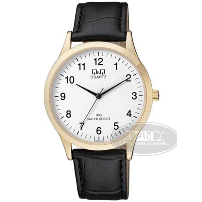Q&Q Classic C212-104 to zegarek uniwersalny, który można nosić zarówno na co dzień jak i na bardziej oficjalne okazje. Czarny pasek czasomierza idealnie komponuje się z jasną tarczą, która jest oznaczona czytelnymi arabskimi cyframi. Sprawia to, że jest przejrzysta i czytelna. Przed uszkodzeniami chroni ją szkło mineralne. Zegarek wyposażony jest w kwarcowy mechanizm zasilany baterią. Koperta została wykonana z trwałego stopu metali. Klasa wodoszczelności 30M sprawia, że zegarek jest odporny na drobne zachlapania. Marka Q&Q jest częścią koncernu Citizen.