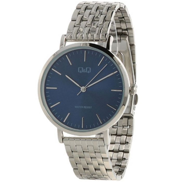 Q&Q Quartz QA20-242 to elegancki zegarek, który można nosić zarówno na co dzień jak i na bardziej oficjalne okazje. Koperta została wykonana z wytrzymałego stopu metali i połączono ją ze stalową bransoletą. Ciemna tarcza oznaczona wyraźnymi indeksami i trzema dokładnymi wskazówkami idealnie komponuje się z elementami obudowy w srebrnym odcieniu. Przed uszkodzeniami chroni ją szkło mineralne. Zegarek wyposażony jest w kwarcowy mechanizm zasilany baterią. Klasa wodoszczelności 30 M pozwala na ograniczony kontakt z wodą. Marka Q&Q jest częścią koncernu Citizen.