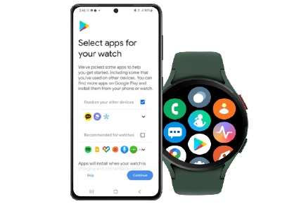 Automatyczna instalacja ulubionych aplikacji z telefonu i innych urządzeń z Androidem na Galaxy Watch4 w momencie pierwszego podłączenia smartwatchu do telefonu(24).