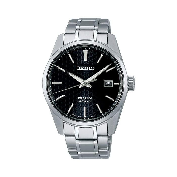 SEIKO Presage Sharp Edged SPB203J1 to elegancki zegarek męski z mechanizmem automatycznym. Podczas projektowania tego modelu producentowi przyświecał jeden cel - stworzenie zegarka o jak najbardziej zaawansowanym kształcie przy użyciu wyłącznie prostych powierzchni. Dzięki temu zegarek, który na pierwszy rzut oka jest minimalistyczny, a przy bliższym poznaniu zachwyca złożonością swojej konstrukcji i liczbą detali ukrytych na tarczy. Pod szkłem szafirowym umieszczono 12 precyzyjnie wykonanych indeksów podkreślających japoński wzór Asanoha, który w tamtejszej kulturze funkcjonuje już ponad 1000 lat.