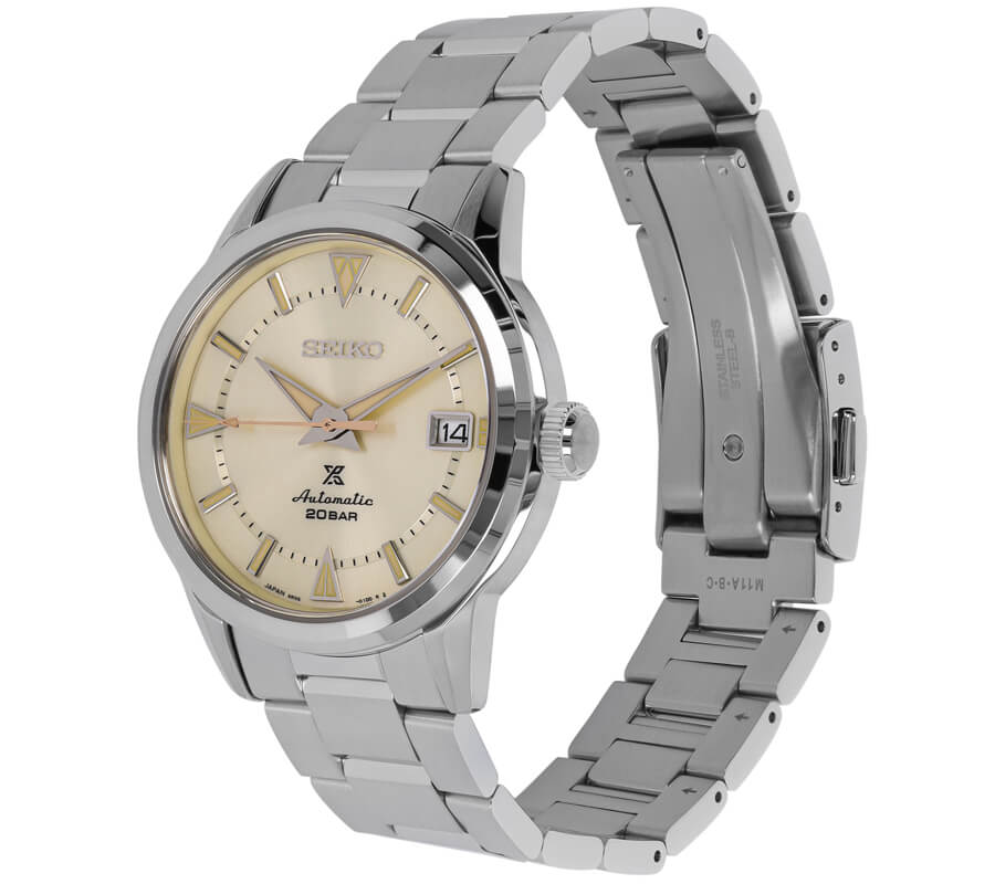 Zegarek SEIKO Prospex The 1959 Alpinist Re-creation SPB243J1 może śmiało towarzyszyć Ci podczas nurkowania czy pływania, dzięki wodoszczelności do 20 bar (200 metrów). Zakręcana koronka i zakręcany, przezroczysty dekiel gwarantują dodatkową ochronę przed wilgocią i pyłem, pozwalając jednocześnie na obserwację ruchu mechanizmu.
