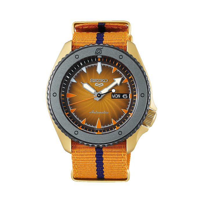 SI SRPF70K1 - projekt tego zegarka nawiązuje do kultowego stroju Ninja Naruto, a luneta i koperta odzwierciedlają trudny trening wymagany do zostania Hokage, tytuł nadany przywódcy Ukrytej Wioski Liścia, do której należy Naruto. Wkładka bezela została zaprojektowana na wzór ochraniacza na czoło, na którym wygrawerowany jest symbol wioski Naruto. Jego kultowe Jutsu (technika Ninja) „Rasengan” inspiruje spiralny wzór tarczy. Kamon klanu Uzumaki, czyli japoński emblemat używany do ozdabiania i identyfikowania osoby, rodziny lub instytucji, jest nadrukowany na deklu.