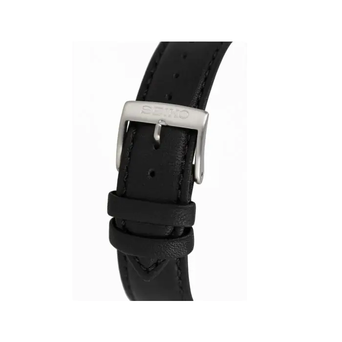 Srebrna stalowa koperta o klasycznym kształcie okrągłym jest odporna na działanie czynników zewnętrznych. Zegarek ma wodoszczelność do 100 metrów (10 barów), dzięki czemu można z nim swobodnie pływać. Zakręcany dekiel gwarantuje wysoką szczelność i bezpieczeństwo mechanizmu. Pasek wykonany jest ze skóry naturalnej w kolorze czarnym, co nadaje zegarkowi eleganckiego wyglądu. Zapięcie na sprzączkę pozwala na łatwe dopasowanie paska do nadgarstka.