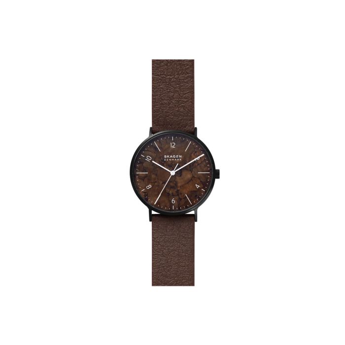 SKAGEN Aaren Naturals SKW6728 to urzekający prostotą czasomierz, który skierowany jest do mężczyzn. Jego wyjątkowa koperta została wykonana ze stali i połączona z delikatnym paskiem ze skóry. Na minimalistycznej, brązowej tarczy znajdują się czytelne indeksy i wskazówki. W tym modelu zastosowano szkło mineralne. Wodoszczelność 50M pozwala na ograniczony kontakt z wodą, np. prysznic.
