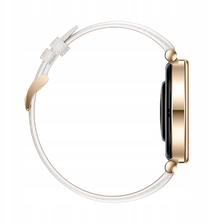 HUAWEI GT 4 41MM CLASSIC ma kopertę ze stali nierdzewnej w kolorze złotym ze srebrną obwódką, która nadaje mu elegancji i trwałości. Pasek jest wykonany ze skóry naturalnej w kolorze białym, co podkreśla kobiecy styl. Zegarek ma średnicę 41,3 mm i grubość 9,8 mm, a jego waga wynosi około 37 g (bez paska). Zegarek jest wodoszczelny do 50 metrów, więc możesz z nim pływać i nurkować. Zegarek ma baterię o pojemności 450 mAh, która zapewnia do 7 dni pracy na jednym ładowaniu. Zegarek ma pamięć na 100 godzin danych treningowych.