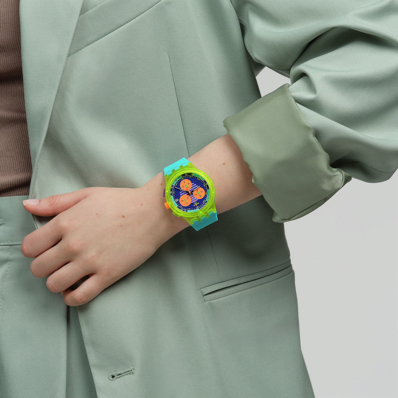 Zegarek Swatch Swatch Neon Wave SUSJ404 posiada wodoszczelność na poziomie 3 ATM, co oznacza, że jest odporny na drobne zachlapania, takie jak mycie rąk, deszcz czy prysznic.