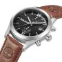 Model posiada kopertę wykonaną ze stali szlachetnej w klasycznym srebrnym kolorze. Jej średnica 44 mm zapewnia wyrazistą, ale dobrze wyważoną obecność na nadgarstku. W połączeniu z brązowym paskiem z naturalnej skóry, zegarek prezentuje się solidnie i ponadczasowo. Skórzany pasek o szerokości 22 mm gwarantuje komfort noszenia i trwałość.