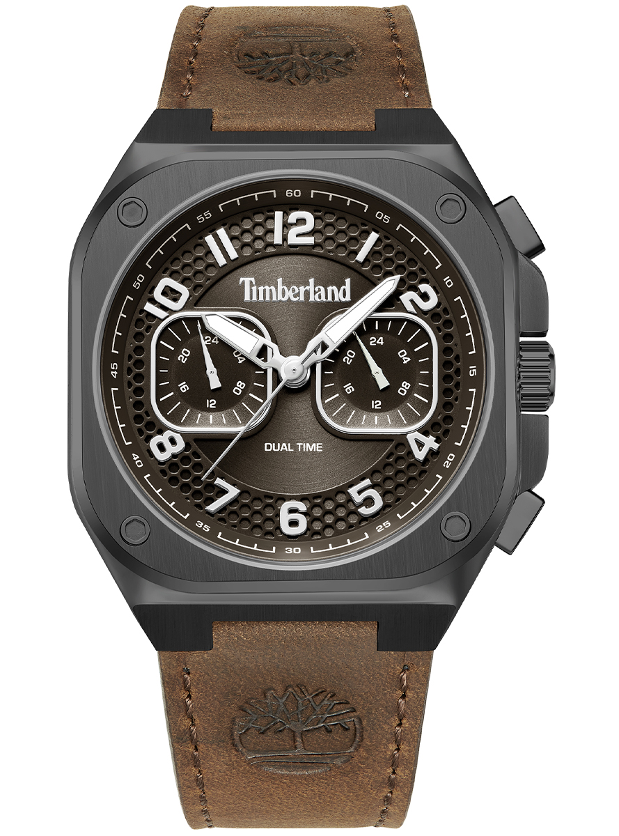 Szara koperta ze stali szlachetnej o średnicy 41 mm subtelnie łączy się z szerokim na 25 mm paskiem wykonanym z naturalnej skóry w odcieniu brązu. Taka kompozycja podkreśla outdoorowy charakter zegarka, jednocześnie gwarantując trwałość i wygodę noszenia.
