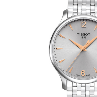 Klasyczny szyk brązowego paska ze skóry bydlęcej ozdobionego tłoczeniem o fakturze skóry aligatora zdecydowanie współgra z prostotą tarczy i sylwetką koperty. Pasek posiada zapięcie motylkowe, które zapewnia komfort w trakcie noszenia oraz sprawia, że w razie przypadkowego rozpięcia zegarek nie ześlizgnie się z nadgarstka. W kolekcji Tissot Tradition dostępne są także modele z bransoletami wykonanymi ze stali szlachetnej.