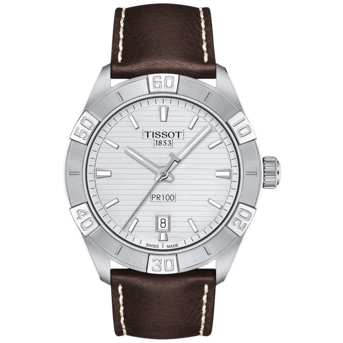 Model T101.610.16.031.00 zadaje szyku również dzięki brązowemu skórzanemu paskowi. Bydlęca skóra i klasyczne zapięcie klamrowe zapewniają duży komfort noszenia, a zegarek elegancko prezentuje się na nadgarstku. W kolekcji Tissot PR 100 dostępne są także modele ze skórzanymi paskami dekorowanymi fakturą skóry aligatora oraz z bransoletami mediolańskimi.