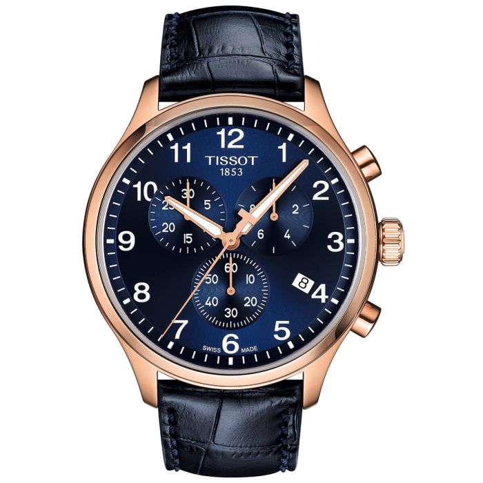 Szwajcarski męski zegarek TISSOT CHRONO XL CLASSIC T116.617.36.042.00 to nie tylko funkcjonalne elementy, ale również wyraz niezwykłej precyzji i staranności w projektowaniu. Niebieska tarcza jest wyjątkowo atrakcyjna i podkreśla ponadczasowy charakter. Na cyferblacie umieszczone są stylizowane, białe indeksy w formie cyfr arabskich oraz finezyjne, biało-pomarańczowe wskazówki, które nadają zegarkowi oryginalności. Centralny element tarczy tworzą trzy subtarcze, które dodają funkcjonalności oraz złożoności kompozycji. Dodatkowo czasomierz wyposażony jest w datownik dnia miesiąca znajdujący się na godzinie 4, co ułatwia śledzenie daty oraz jest szczególnie przydatne w codziennym użytkowaniu. Zegarek ozdobiony jest charakterystycznym logo Tissot, co stanowi znak rozpoznawczy marki.