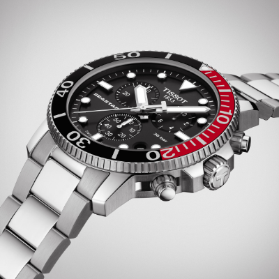 Model Tissot Seastar 1000 Chronograph T120.417.17.041.00 to zegarek bezkompromisowy. Jest idealny dla mężczyzn prowadzących aktywny tryb życia, których pasjonują wodne przygody, jak też dla tych, którzy szukają sportowej elegancji oraz najwyższej jakości. Zegarek ten, stworzony przez szwajcarskich mistrzów zegarowego rzemiosła, odznacza się niezrównanej klasy materiałami, szeregiem przydatnych właściwości, jak też niezaprzeczalnym stylem. Kto zaufa temu modelowi, zyska zegarek podkreślający wizerunek i przygotowany na każde warunki.