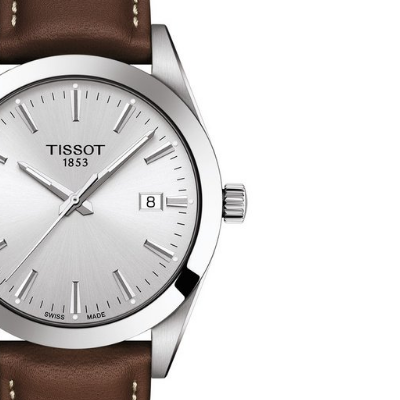 Model T127.410.16.031.00 zadaje szyku również dzięki brązowemu skórzanemu paskowi. Zapięcie motylkowe zapewnia komfort w trakcie noszenia oraz sprawia, że w razie przypadkowego rozpięcia paska zegarek nie ześlizgnie się z nadgarstka. W kolekcji Tissot Gentleman dostępne są także modele z bransoletami ze stali szlachetnej.