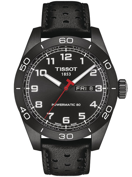 Szwajcarski męski zegarek TISSOT PRS 516 POWERMATIC 80 T131.430.36.052.00 jest niezwykle atrakcyjny i charakteryzuje się sportowym designem. Intensywna czerń tarczy, nadaje modelowi dynamiczny wygląd. Na cyferblacie znajdują się wyraźne, białe indeksy w postaci cyfr arabskich oraz oryginalne wskazówki, które pokryte są powłoką SuperLuminovą, pozwalającą na odczytywanie czasu w słabych warunkach oświetleniowych. Dzięki temu zegarek jest doskonale czytelny również w ciemności. Dodatkowo czasomierz wyposażony jest w datownik analogowy umieszczony na godzinie 3, co ułatwia śledzenie daty oraz jest szczególnie przydatne w codziennym użytkowaniu.