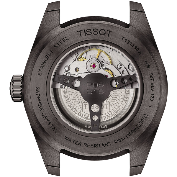 TISSOT PRS 516 POWERMATIC 80 T131.430.36.052.00 oferuje wodoszczelność na poziomie 100 metrów (10 ATM), co oznacza, że jest odpowiedni do noszenia podczas pływania.