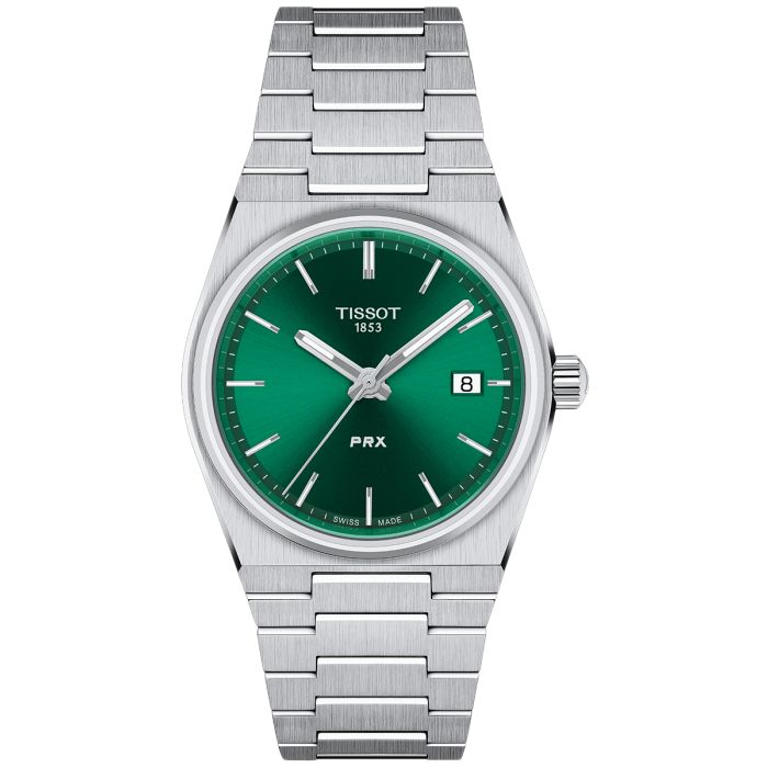 Tarcza zegarka Tissot PRX T137.210.11.081.00 wybija się z tła, jakie jednolicie tworzą koperta i bransoleta. Jej kolor przyciąga uwagę, a symboliczne indeksy godzinowe i wskazówki pozwalają na łatwe odczytanie godziny - zostały wzbogacone paskami luminescencyjnego materiału SuperLuminova, dzięki któremu można odczytać czas nawet w ciemności.