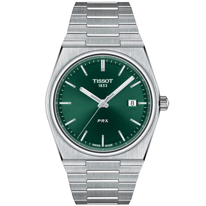 Tarcza zegarka Tissot PRX T137.410.11.091.00 wybija się z tła, jakie jednolicie tworzą koperta i bransoleta. Jej kolor przyciąga uwagę, a symboliczne indeksy godzinowe i wskazówki pozwalają na łatwe odczytanie godziny - zostały wzbogacone paskami luminescencyjnego materiału SuperLuminova, dzięki któremu można odczytać czas nawet w ciemności.