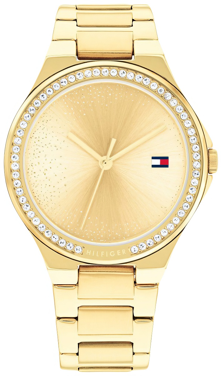 Zegarek Tommy Hilfiger Juliette 1782642 wyróżnia się złotą tarczą, która w połączeniu ze złotymi wskazówkami tworzy efektowną i luksusową kompozycję. Dzięki zastosowaniu mineralnego szkła, tarcza jest doskonale chroniona przed zarysowaniami, co zapewnia długotrwałą klarowność odczytu czasu. Precyzyjny mechanizm kwarcowy gwarantuje niezawodność wskazań oraz dokładność pomiaru czasu.