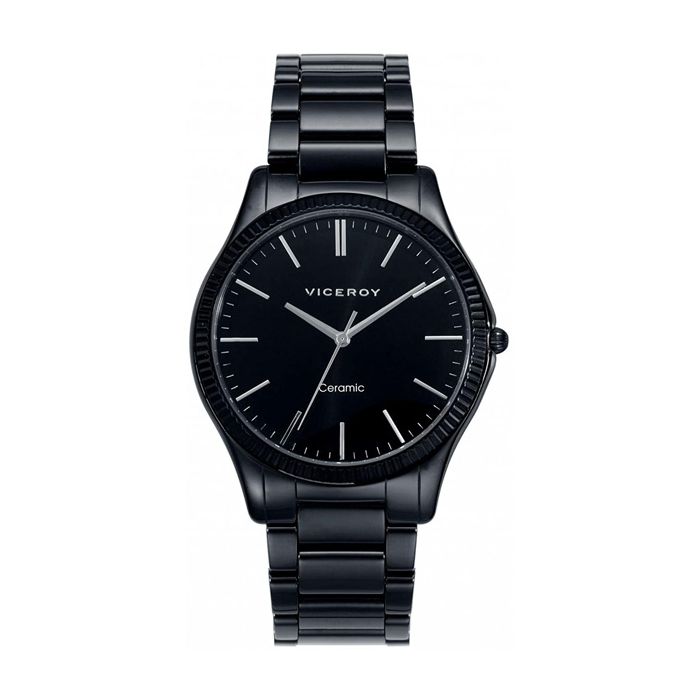 VICEROY 47815-57 to modny czasomierz dla mężczyzn prezentujący klasyczną linię. Koperta o średnicy 41,5 mm oraz bransoleta tego modelu zostały wykonane z czarnego spieku ceramicznego. Ceramika charakteryzuje się niezwykłą lekkością i odpornością na zarysowania. Dookoła czarnego cyferblatu umieszczony został ciekawie ozdobiony pierścień. Wodoszczelność 30m chroni ten model jedynie przed niewielkimi zachlapaniami np. przy myciu rąk.