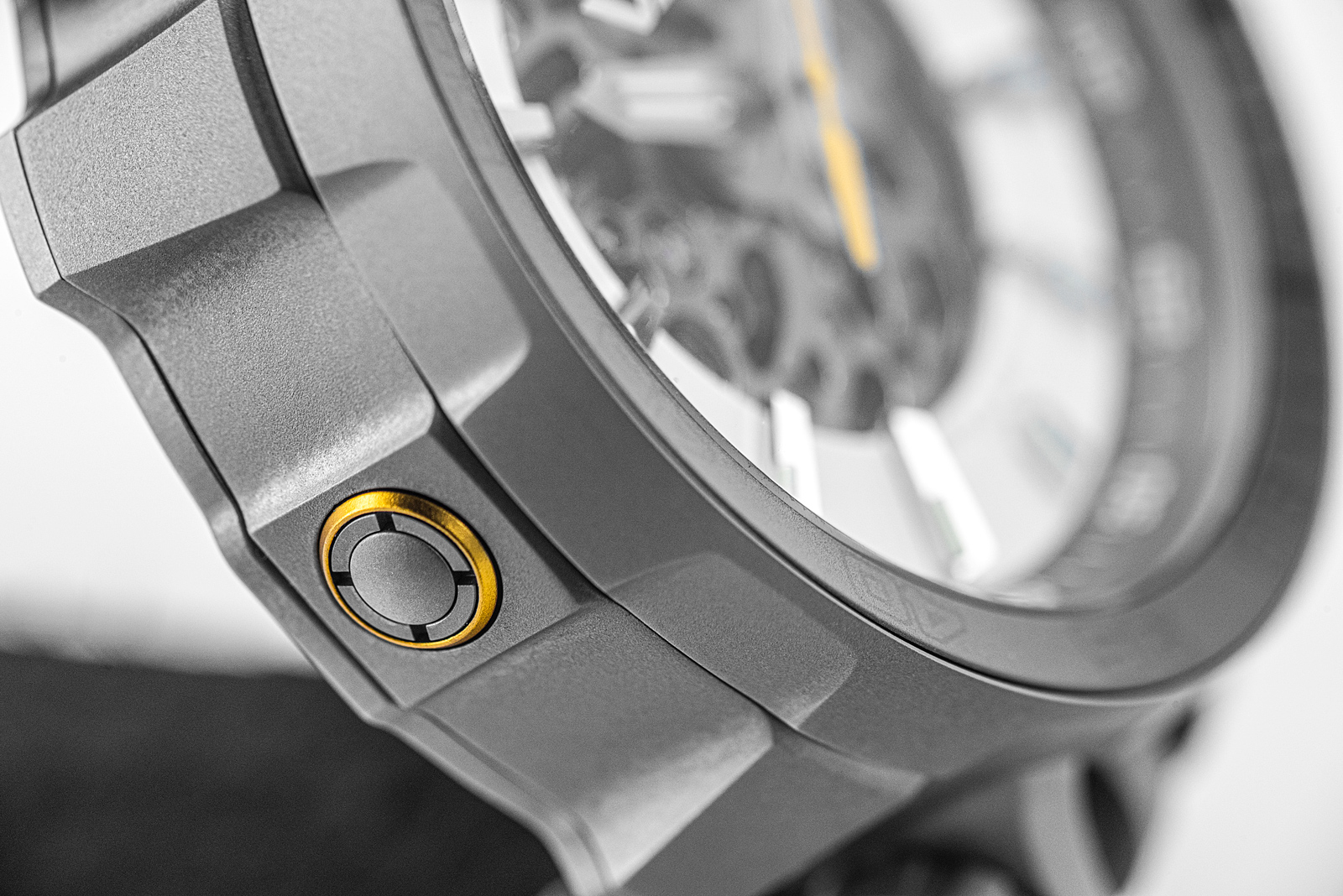 We wnętrzu tego ekstrawaganckiego zegarka męskiego umieszczono mechanizm automatyczny Seiko NH72, łożyskowany na 24 kamieniach. został wyposażony w funkcję stop sekunda, pozwalającą na precyzyjne ustawienie czasu. Czas rezerwy chodu wynosi 41 godzin. Żywotność baterii oszacowano na dwa lata. Kaliber ten został pokryty rutenem.