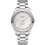 Po tarczy biegną równie srebrne wskazówki o niezwykle smukłym kształcie. U dołu cyferblatu widnieje sygnatura “Swiss Made”, uzyskiwana przez wykorzystanie mechanizmu w pełni szwajcarskiego, oraz po przejściu serii specjalistycznych testów.