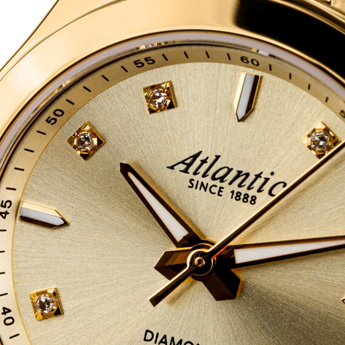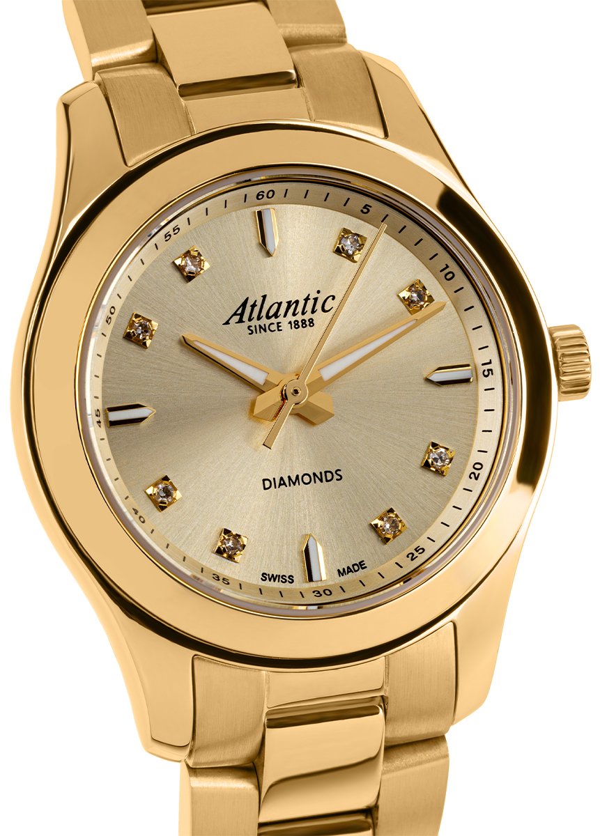 Marka Atlantic wychodzi naprzeciw oczekiwaniom kobiet poszukujących niebanalnych, acz szykownych dodatków do ich garderób. Niech więc swoim złotym błyskiem Twoją uwagę przyciągnie model Atlantic Seapair 20335.45.37, zegarek który już zawsze będziesz chciała mieć przy sobie.
