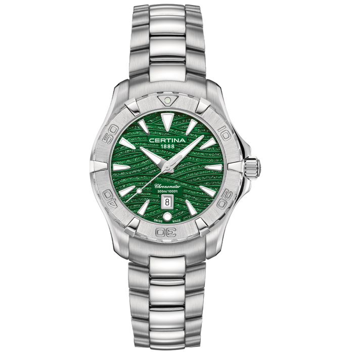 Certina C032.251.11.091.09 to zegarek, który łączy elegancję z funkcjonalnością, idealny dla nowoczesnych kobiet ceniących klasykę w sportowym wydaniu. Model DS Action Lady o średnicy 35 mm zachwyca precyzją działania i wytrzymałością, co potwierdza certyfikat chronometru COSC. Zegarek ten doskonale sprawdzi się zarówno na co dzień, jak i w bardziej wymagających warunkach, dzięki swojej wodoszczelności do 300 m (30 bar). Wyjątkowy design z zieloną tarczą i solidną stalową kopertą sprawia, że zegarek jest zarówno praktyczny, jak i stylowy.