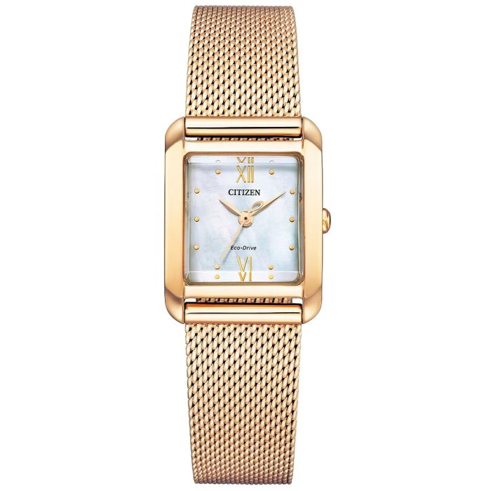 Za działanie tego zegarka damskiego odpowiada mechanizm solarny Citizen Eco-Drive. Umieszczone na cyferblacie panele słoneczne pozwalają mu na wykorzystywanie dowolnego światła jako źródła zasilania.