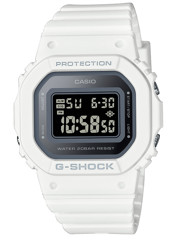 Biały zegarek Casio G-SHOCK damski GMD-S5600-7ER to propozycja od marki znanej na całym świecie ze swojej niezwykłej wstrząsoodporności. Zegarek pochodzi z oficjalnej polskiej dystrybucji.