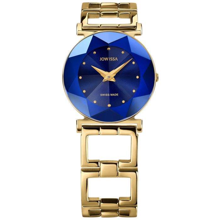 Jowissa Facet Swiss Ladies Watch J5.848.M to zegarek, który olśniewa jak prawdziwy klejnot. Ten szwajcarski zegarek damski nie tylko przyciąga wzrok, ale także cechuje się precyzyjnym odmierzaniem czasu. Dzięki wyjątkowemu szlifowi diamentowemu na szkle oraz tarczy w kolorze głębokiego błękitu, model ten wyróżnia się ponadczasowym i eleganckim stylem. Złota bransoleta ze stali nierdzewnej nadaje całości luksusowego wykończenia, co czyni go idealnym dodatkiem na każdą okazję.