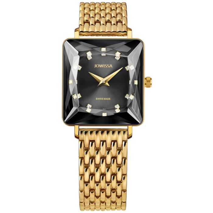 Zegarek Jowissa Facet Princess Swiss Ladies Watch J8.064.M to luksusowy dodatek, który zachwyci każdą kobietę ceniącą elegancję oraz precyzję szwajcarskiego rzemiosła. Ten wyjątkowy model w czerni i złocie łączy w sobie funkcjonalność niezawodnego czasomierza i urok eleganckiej biżuterii. Inspirowany szlifem diamentów „Princess”, sprawia, że koperta emanuje blaskiem i przyciąga uwagę.