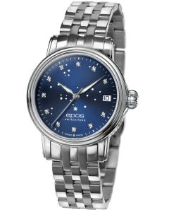 Charakterystyczny element tego modelu to zielona tarcza, posiadająca na swojej powierzchni delikatne zdobienie. Srebrne wskazówki i liniowe indeksy utrzymane są w stylu minimalistycznym, co z kolei zapewnia tarczy kompletną przejrzystość. Cyferblat zamyka mineralne, utwardzane szkiełko o niskiej podatności na pęknięcia.