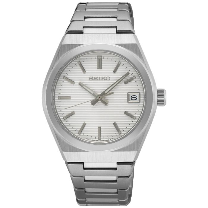 Model Seiko SUR573P1 posiada czytelną, białą tarczę, która doskonale komponuje się ze srebrnymi akcentami. Tradycyjne wskazanie analogowe pozwala na szybki i wygodny odczyt czasu. Zegarek wyposażony jest w datownik, który precyzyjnie pokazuje dzień miesiąca. Dzięki szafirowemu szkiełku, które cechuje się wyjątkową odpornością na zarysowania, tarcza pozostaje nienaruszona nawet w trudnych warunkach użytkowania.